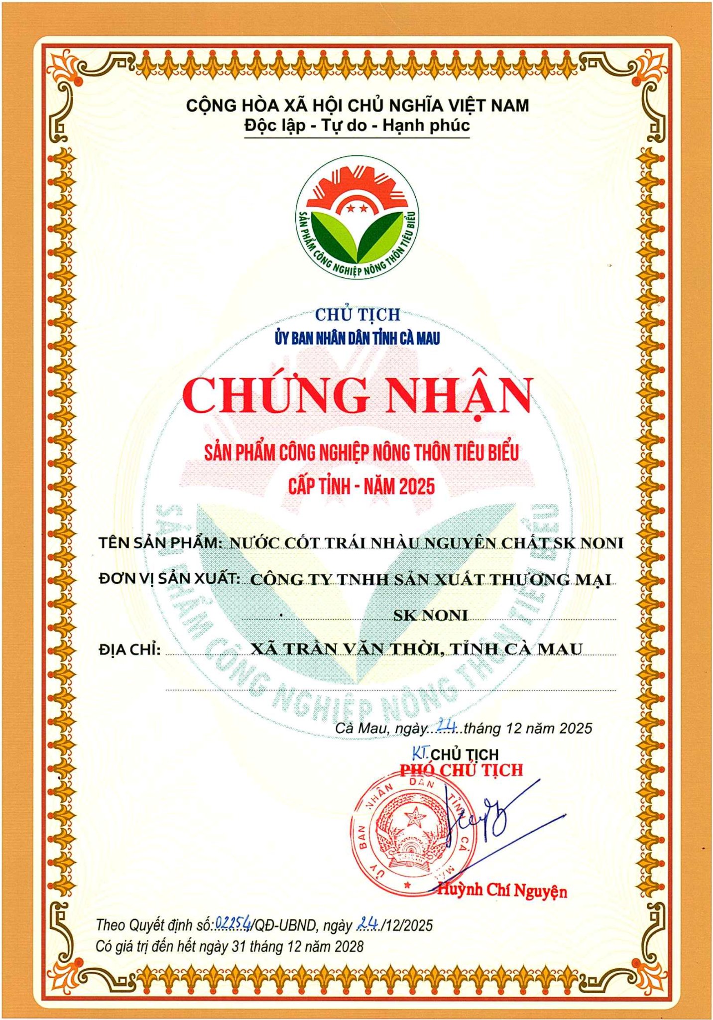 Sản xuất bới: CÔNG TY TNHH SẢN XUẤT THƯƠNG MẠI SK NONI- Huyện Trần Văn Thời, Tỉnh Cà Mau